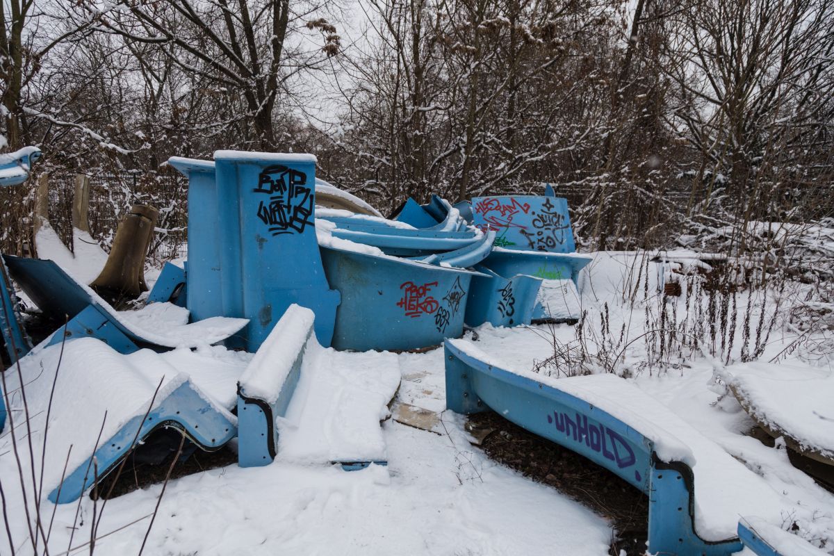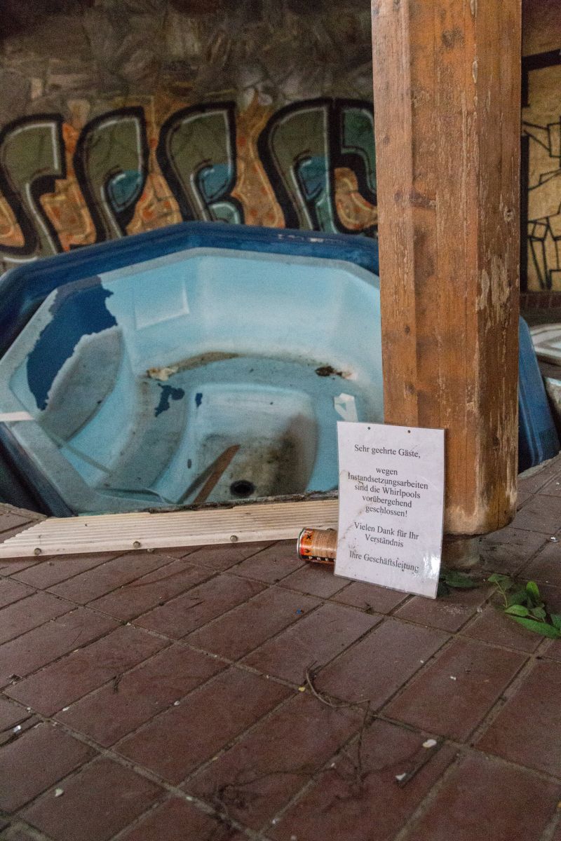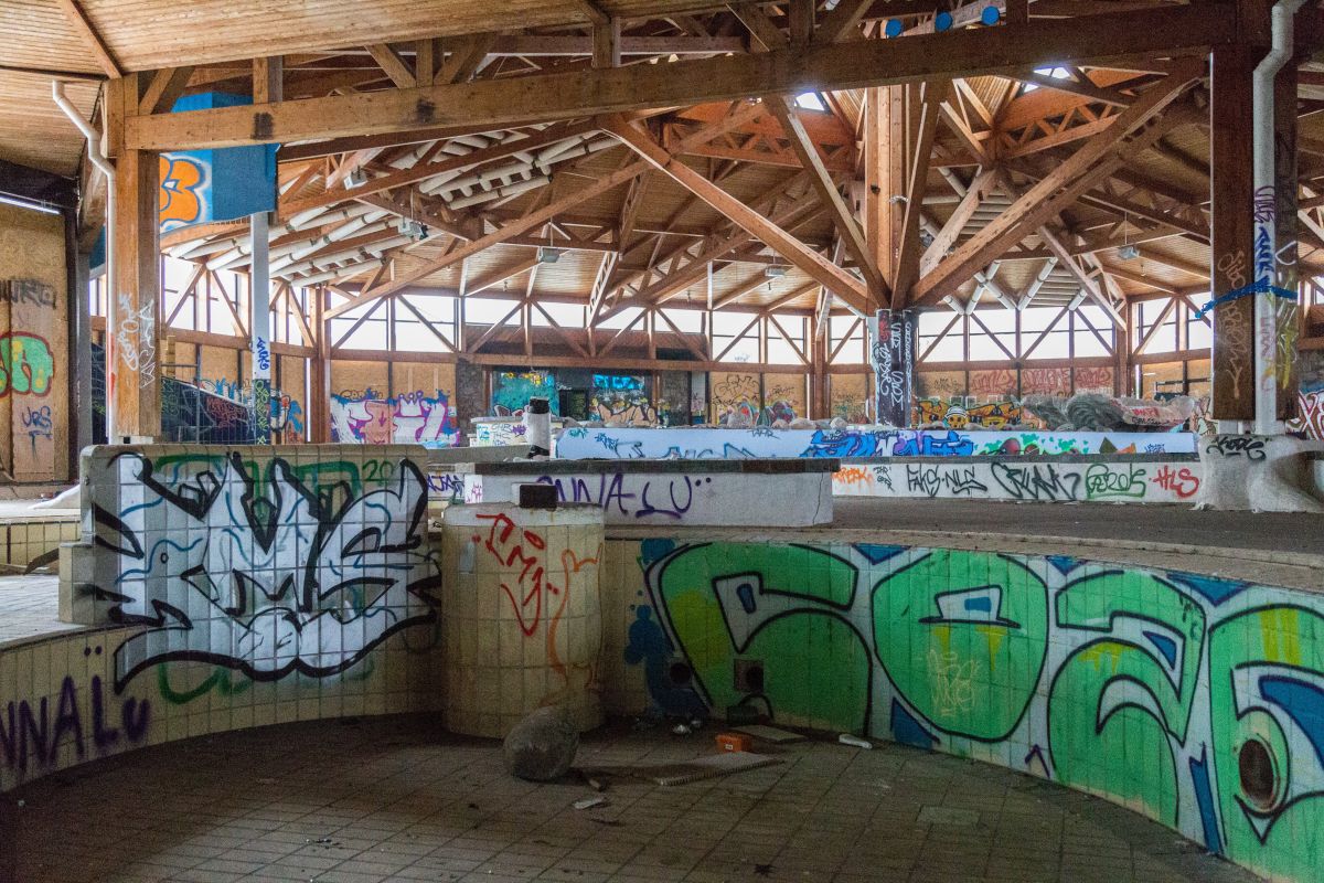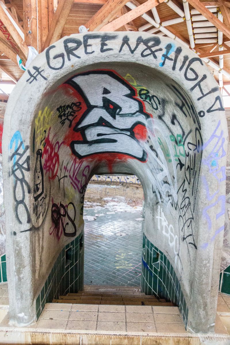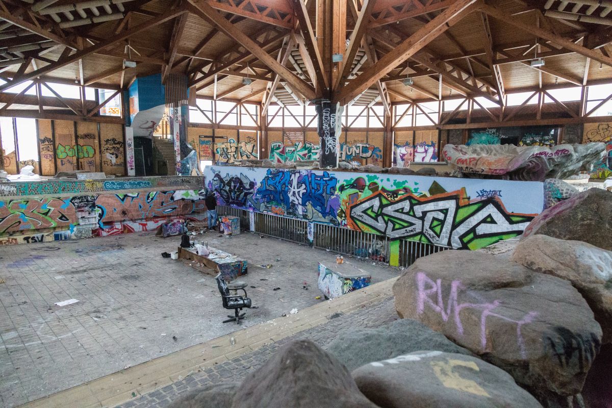 Den vorletzten Tag des Jahres habe ich für eine kleine Erkundungstour durch das “blub” Berlin (Berliner Luft- und Badeparadies) unternommen. Es wurde erst vor wenigen Jahren geschlossen und ist mittlerweile ein Treffpunkt für Sprayer, Geocacher, Metalldiebe und Schaulustige (alles Gruppen, welche ich dort getroffen habe). Das Gelände ist direkt über die Zufahrtsstraße zugänglich.