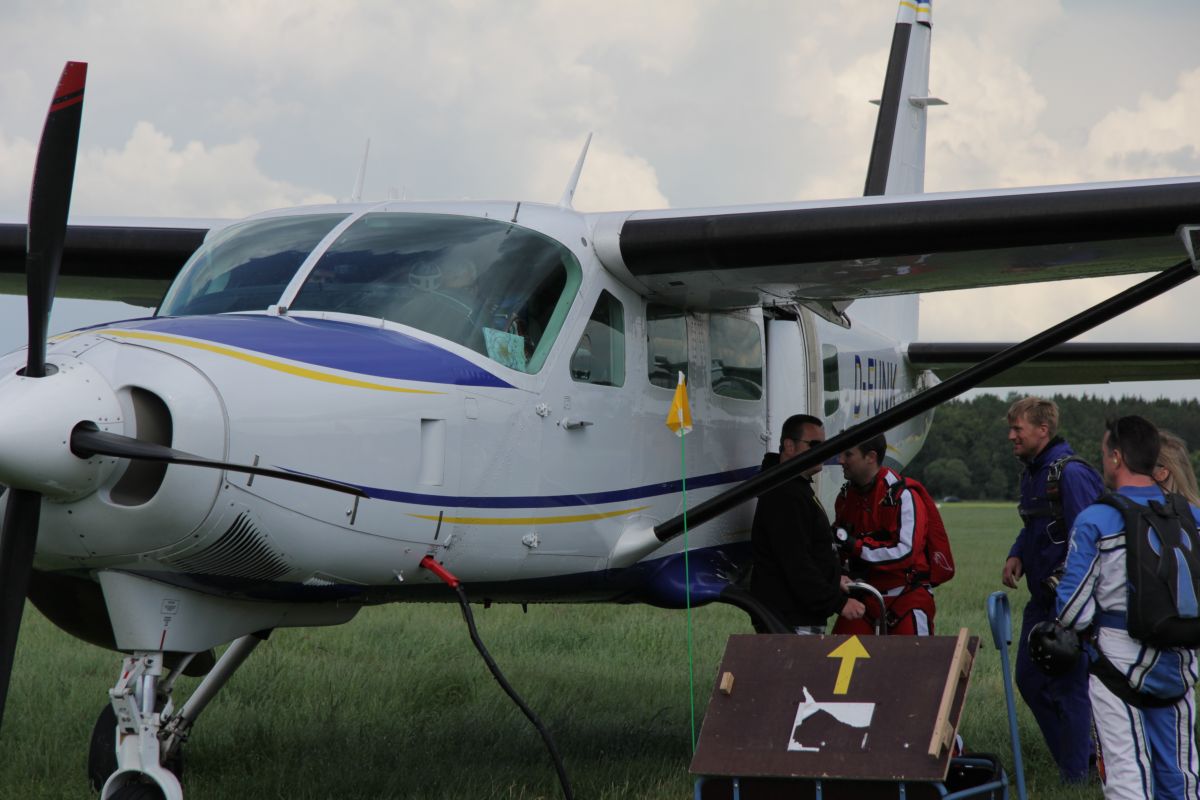 Und das ist unsere Maschine, eine Cessna 208 Caravan, bietet Platz für bis zu 14 Springer (ist dann sehr kuschelig in der Maschine 😀 ) und bringt uns in rund 15 Minuten auf 4000 Metern Höhe.