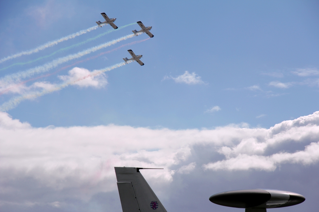 Während wir den A400M begafften, zog über uns eine 3er Formation kleiner Maschinen hinweg und zeigte ein paar Kunstflugmanöver – nichts herausragendes an diesem Tag, jedoch hörte ich über die Lautsprecher, dass es sich dabei um das Team We Fly aus Italien handelte und die Piloten alle behinderte Menschen sind, welche im Rollstuhl sitzen – Respekt!