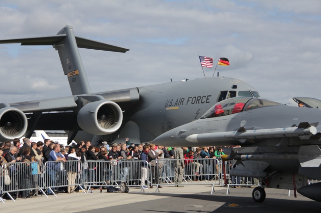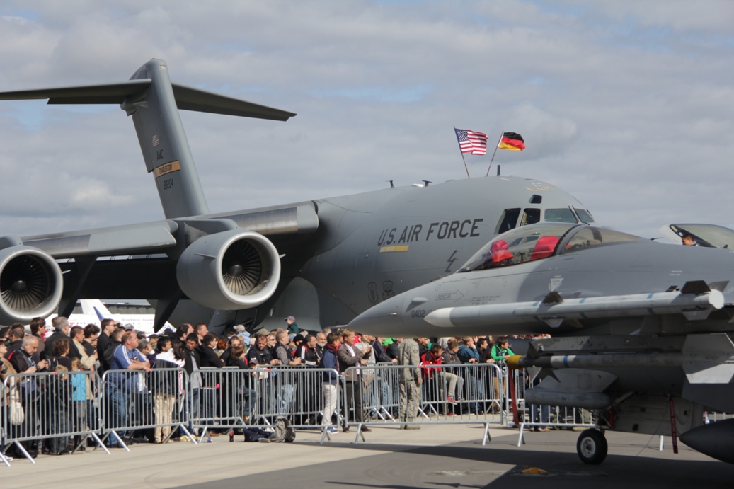 .. oder die riesige McDonnell Douglas C-17A (im Vordergrund eine F-16).