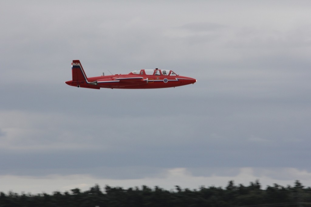 Ebenfalls ein Oldtimer der Lüfte ist die Fouga Magister C aus französischer Produktion, die durch ihren extremen Leichtbau sehr wendige Manöver vollführte.