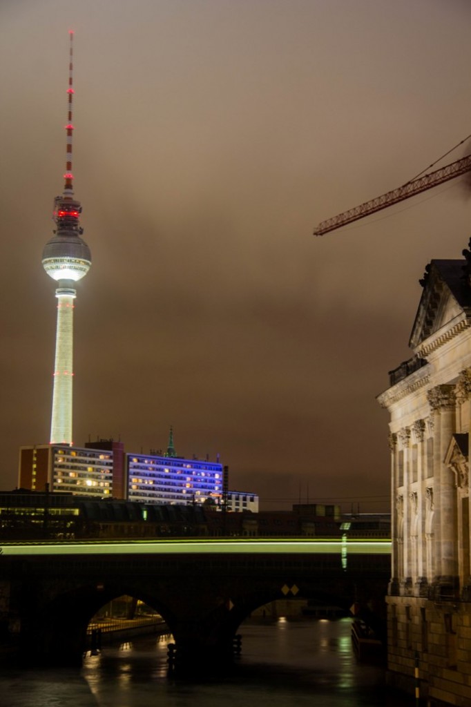 Den Jahreswechsel habe ich in Berlin mit Freunden gefeiert (die Nacht habe ich mehr geböllert als Fotografiert ^^) aber am Neujahrsabend bin ich trotz ekelhaftem Regen und Wind eine kleine Runde an der Spree gedreht – vom Dom bis zur Friedrichstrasse. Der Regen hat es mir nicht leicht gemacht und ohne entsprechendes Putztuch war nach spätestens einer Stunde mein Filter so verschmiert, dass ich die Tour abbrechen musste. Neben einem schönen 360-Grad-Panorama sind auch die folgenden Bilder entstanden: