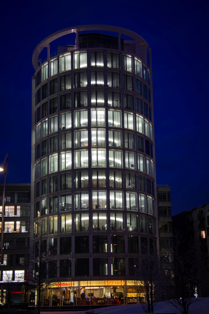 - Hochhaus an der Zirkusstrasse 1: mein klarer Favourit! Nach kurzer Wartezeit kam direkt der Objektleiter (tolle Namen haben die Jobs da 😀 ) des Hauses zu mir und führte mich direkt auf das Dach des Gebäudes, wo sich eine Terasse mit Bar befindet. Die Aussicht ist Nahezu uneingeschränkt 360° möglich und in der Woche genügt ein kurzer Anruf und wenn keine Veranstaltungen stattfinden, habe ich freie Hand, mich dort auszutoben.