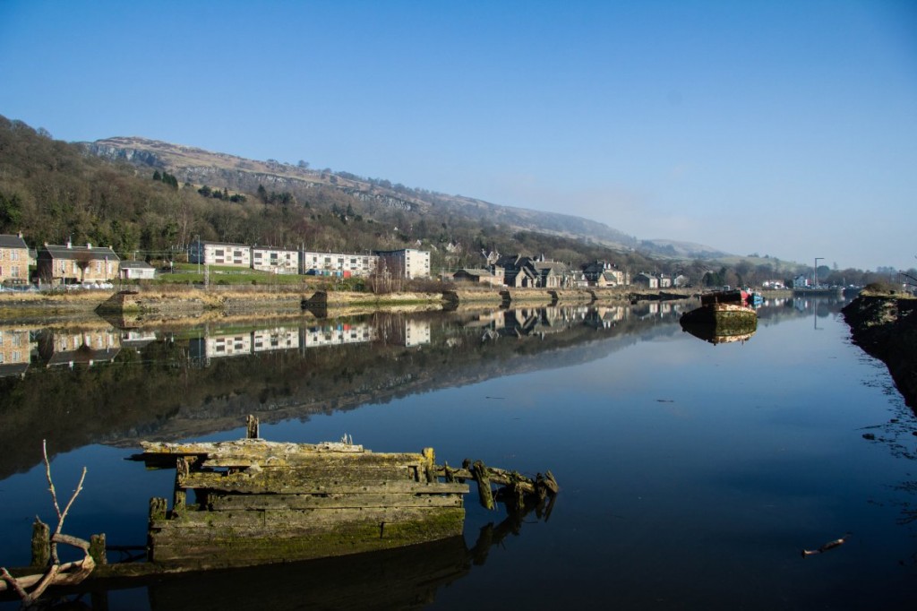 Dieser Tag entwickelte sich nach der spontanen Entscheidung, einfach irgendwo hin mit der Bahn zu fahren, zu einer kleineren Wandertour. Erster Halt war der kleine Ort mit dem lustigen Namen “Bowling” welcher einen kleinen Hafen hatte, der wohl schon lange kein fahrtüchtiges Schiff mehr gesehen hatte.