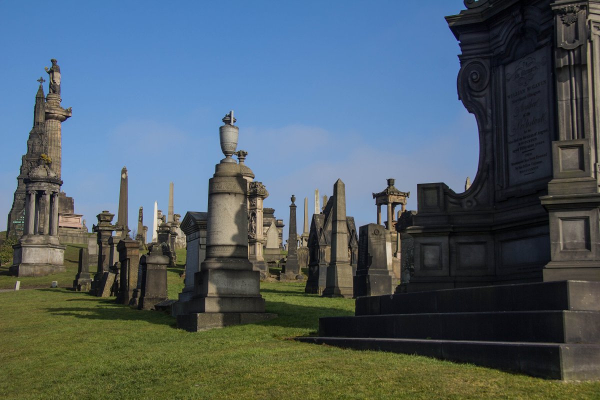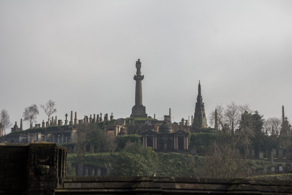 Direkt hinter der Kirche befindet sich der Glasgow Necropolis, ein Friedhofshügel mit zig pompös in Szene gesetzten Grabsteinen .. nein besser Grabmonumenten 😀