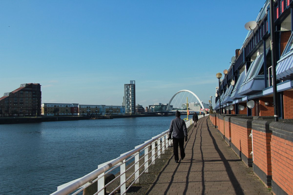 So wunderschön die Architektur von Edinburgh auch ist – so hässlich waren manche Ecken von Glasgow. Die Stadt, früher bekannt als mächtiger Seehafen und Arbeiterstadt, hat in den letzten Jahrzehnten einen starken Wandel durchgemacht. So spielt der Seehandel und Schiffbau mittlerweile gar keine Rolle mehr in dieser Stadt – was man am Baustil aber noch sehr deutlich sieht. Überall im Hafengebiet stehen noch alte Speicher, heruntergekommene Häuser und nicht zuletzt riesige Freiflächen der ehemaligen Industriegebäude herum.