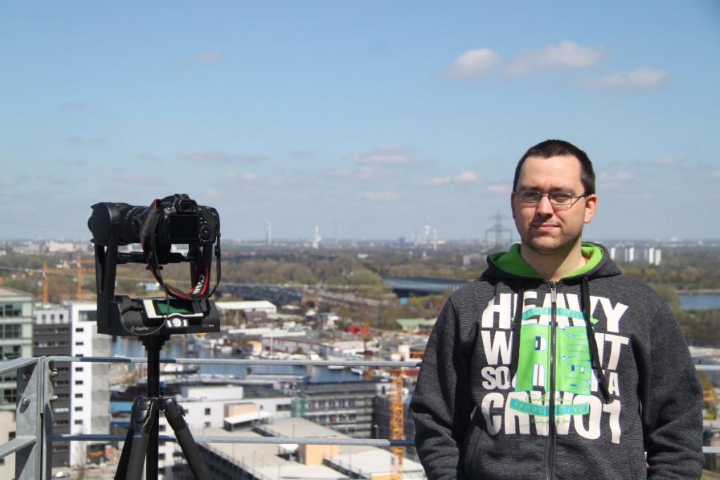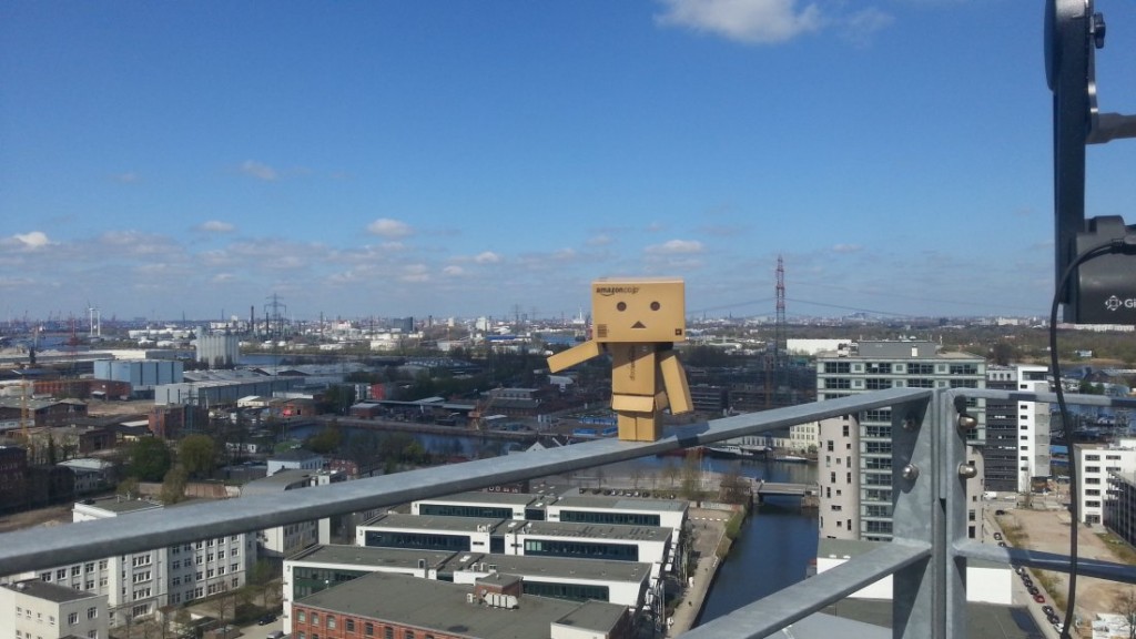 Gestern dann konnte ich das erste mal mit all den bisher aus Gigapans gewonnenen Erfahrungen auf ein Hochhaus anrücken, um ein neues Maß an Qualität und Auflösung zu erreichen. Mein Ziel war der Channeltower in Harburg, eines der höchsten Gebäude in der näheren Umgebung. Nach vorheriger Anfrage habe ich recht schnell grünes Licht von der IVG bekommen und der zuständige Sicherheitsdienst empfing mich freundlich und ließ mich auf die Dachterasse des Hochhauses. Vielen Dank auch hier nochmal an die IVG/Security, dass alles so unkompliziert funktioniert hat und ich von dort aus Bilder machen durfte! 😉